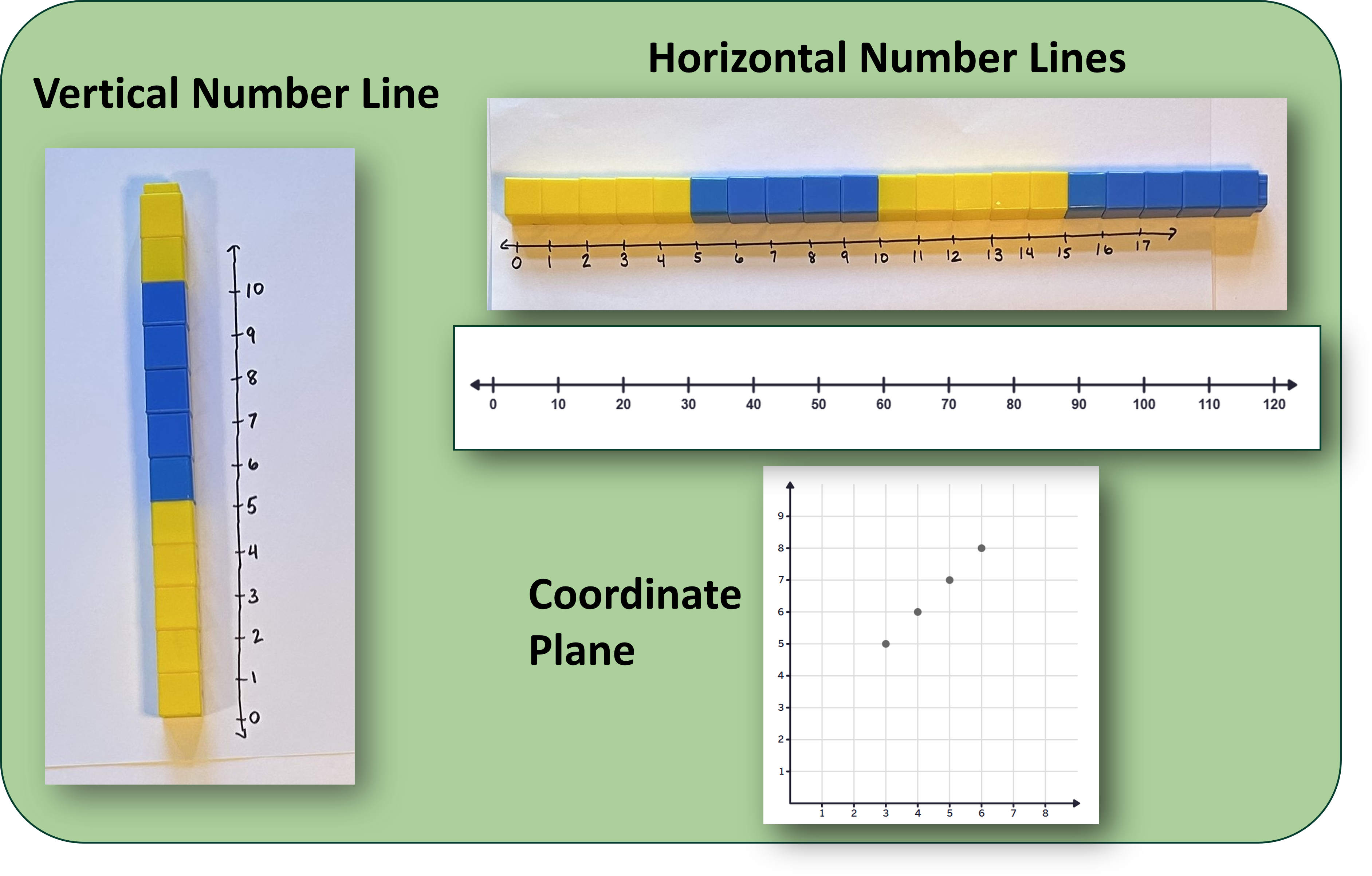 The number line is a bridge between discrete and continuous thinking. It connects concrete models such as ten-frames, base-ten blocks, and part-part-whole diagrams to more abstract reasoning.