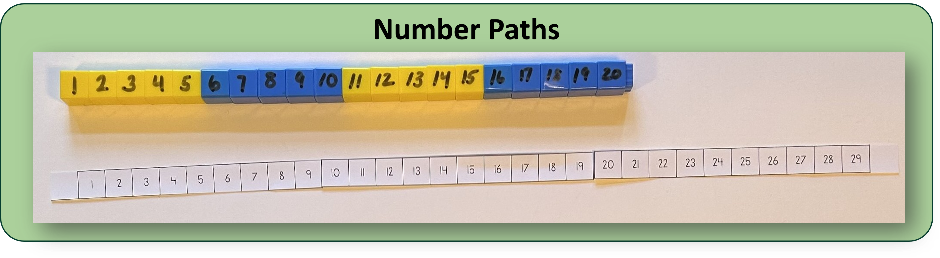 A number path, such as the ones shown above, can help a kindergartener count and compare.