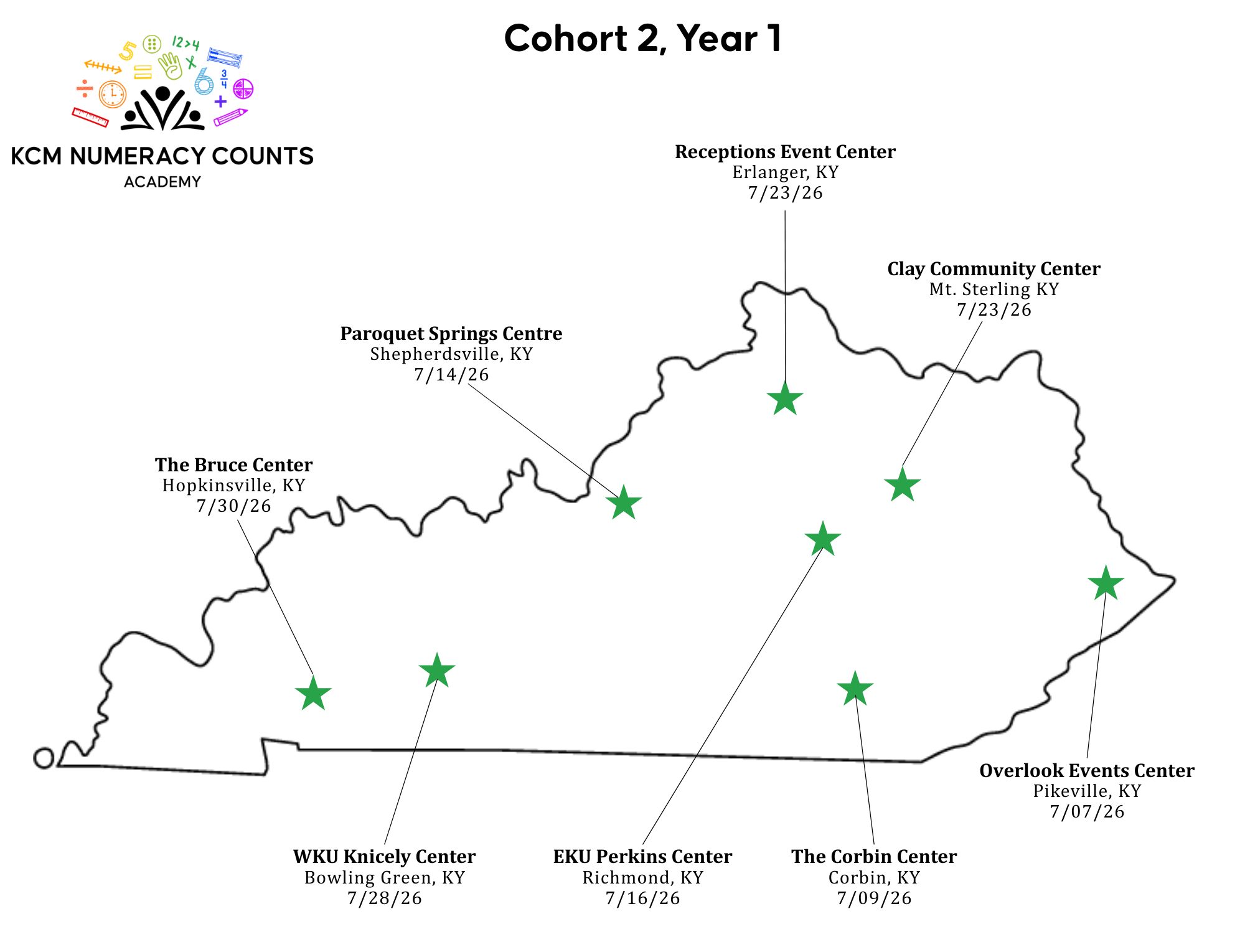 HB 162 (2024) states that "mathematics proficiency is essential for all Kentucky students to achieve the 12 academic goals established in KRS 158.6451. It is Kentucky's goal that all children have the skills necessary to demonstrate procedural skill and fluency, building from conceptual understanding to application, in order to solve real-world problems." The KCM Numeracy Counts Academy is one of the efforts established to achieve that goal (see the KDE's Numeracy Counts site for more).