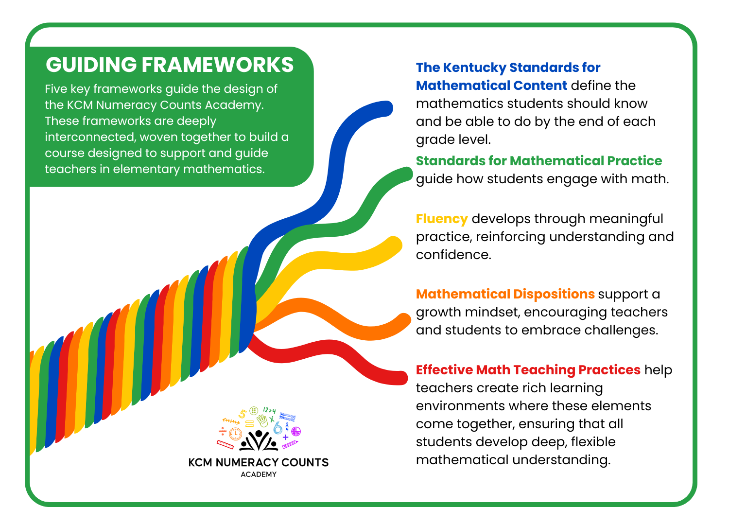 - understand and define fluency across mathematical domains in the Kentucky Academic Standards through the Academy Guiding Frameworks